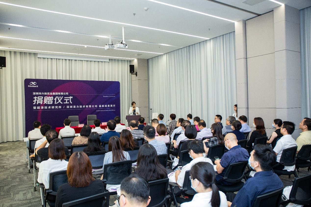 9月18日,深圳市六和实业集团有限公司(以下简称:六和实业集团)捐赠深圳清力技术有限公司(以下简称:清力技术)仪式暨超滑技术研究所/深圳清力技术有限公司最新成果展示在坪山高新区产学研基地举行。坪山本土优秀企业六和实业集团通过资金捐赠形式,为深圳清华大学研究院超滑技术研究所产业化公司清力技术有限公司从事的结构超滑技术科研与发展提供助力。六和实业集团、深圳清华大学研究院、超滑技术研究及其产业化公司深圳清力技术有限公司主要代表出席会议。坪山区副区长吴志柳与科技创新局、民政局领导也亲临仪式现场,共同见证了六和与清力的携手合作。